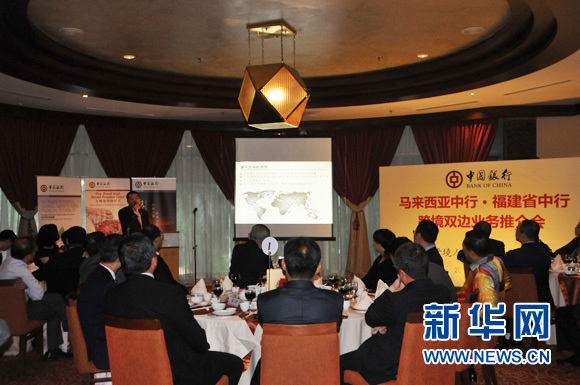 中国银行代表向出席嘉宾介绍专门为闽商制定的跨境金融服务业务。