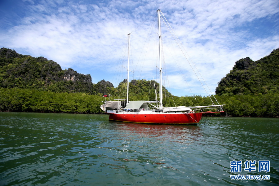 外国游客停靠麒麟河上的帆船。新华网记者黄海敏摄