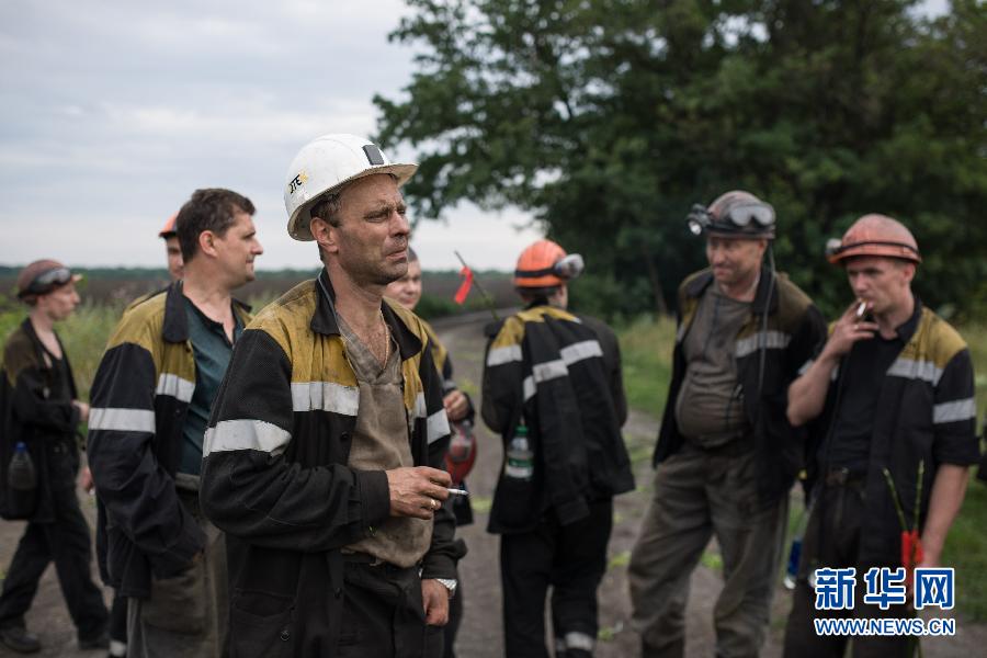 7月19日,在乌克兰顿涅茨克州马航MH17航班的坠毁现场附近,矿工志愿者在农田旁休息。当日,马航MH17航班的第一批遇难乘客遗体已经运出空难现场,这批遗体的数量大约为38具。 新华社记者戴天放摄