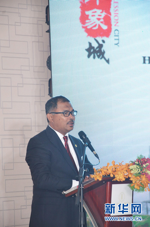 马六甲州首席部长伊德里斯爱在签约仪式上致辞。新华网发 王大玮 摄