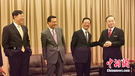 资料图:“一带一路”马中工商界对话会在吉隆坡举行。中国驻马大使黄惠康(右2)、马华公会廖中莱(右3)、中联部部长助理李军(右4)。